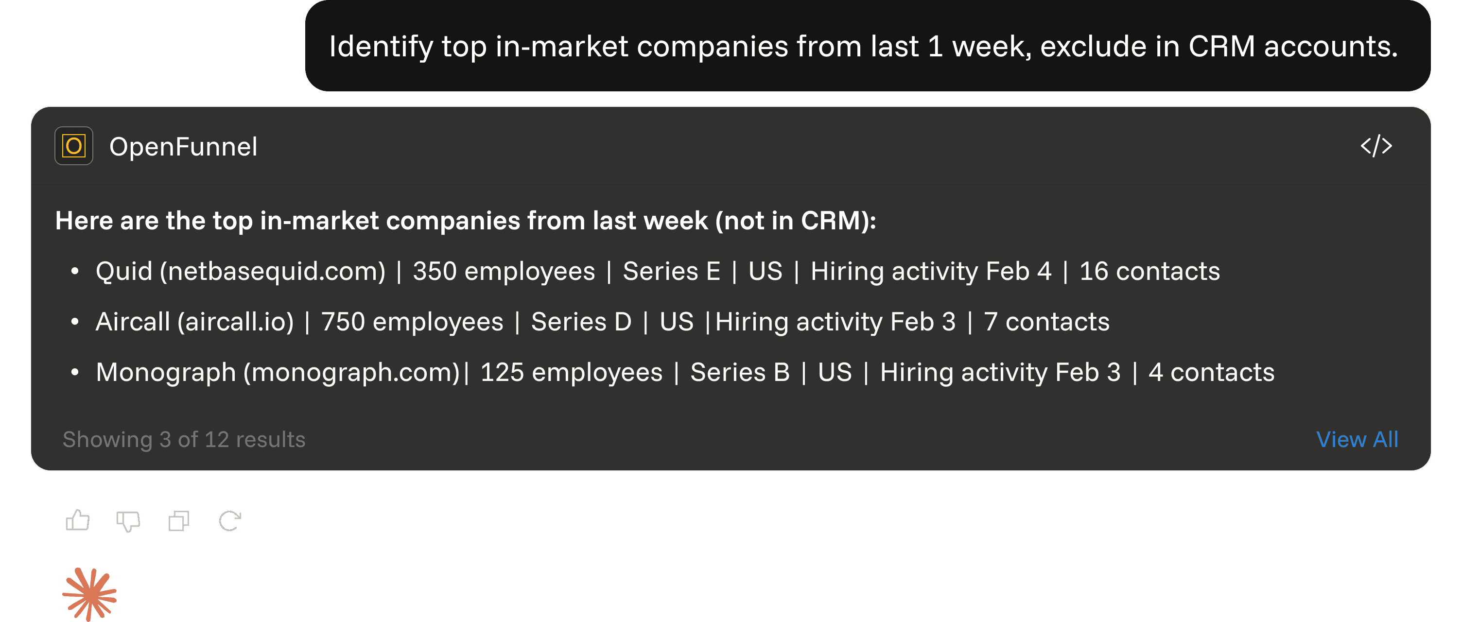 OpenFunnel pushes net-new, high-intent accounts with mapped contacts into Slack and CRM.